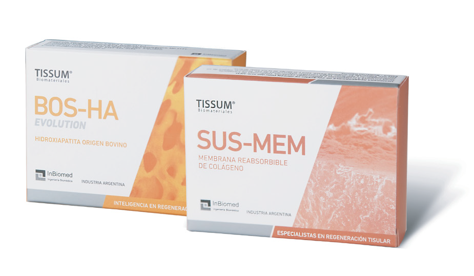 Fecha de cirugía: Abril de 2017 Paciente femenina de 21 años de edad, sistémicamente sana. Descripción: La paciente se presentó con fracaso implantario a la consulta. Se regeneró la zona correspondiente a la pieza 1.2 con 50% de hueso autólogo y 50% BOS-HA TISSUM, partículas medianas, recubierto por una membrana de colágeno SUS-MEM TISSUM fijada con tres tachuelas.