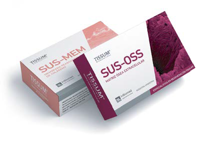 Descripción Paciente de 65 años, sexo femenino. Se observan defectos óseos verticales en zona de anterosuperior. Presenta fenotipo fino, se decide una cirugía periodontal de acceso por palatino, con terapia regenerativa, con colocación de membrana reabsorbible de colágeno de origen porcino TISSUM y Matriz ósea extracelular TISSUM.